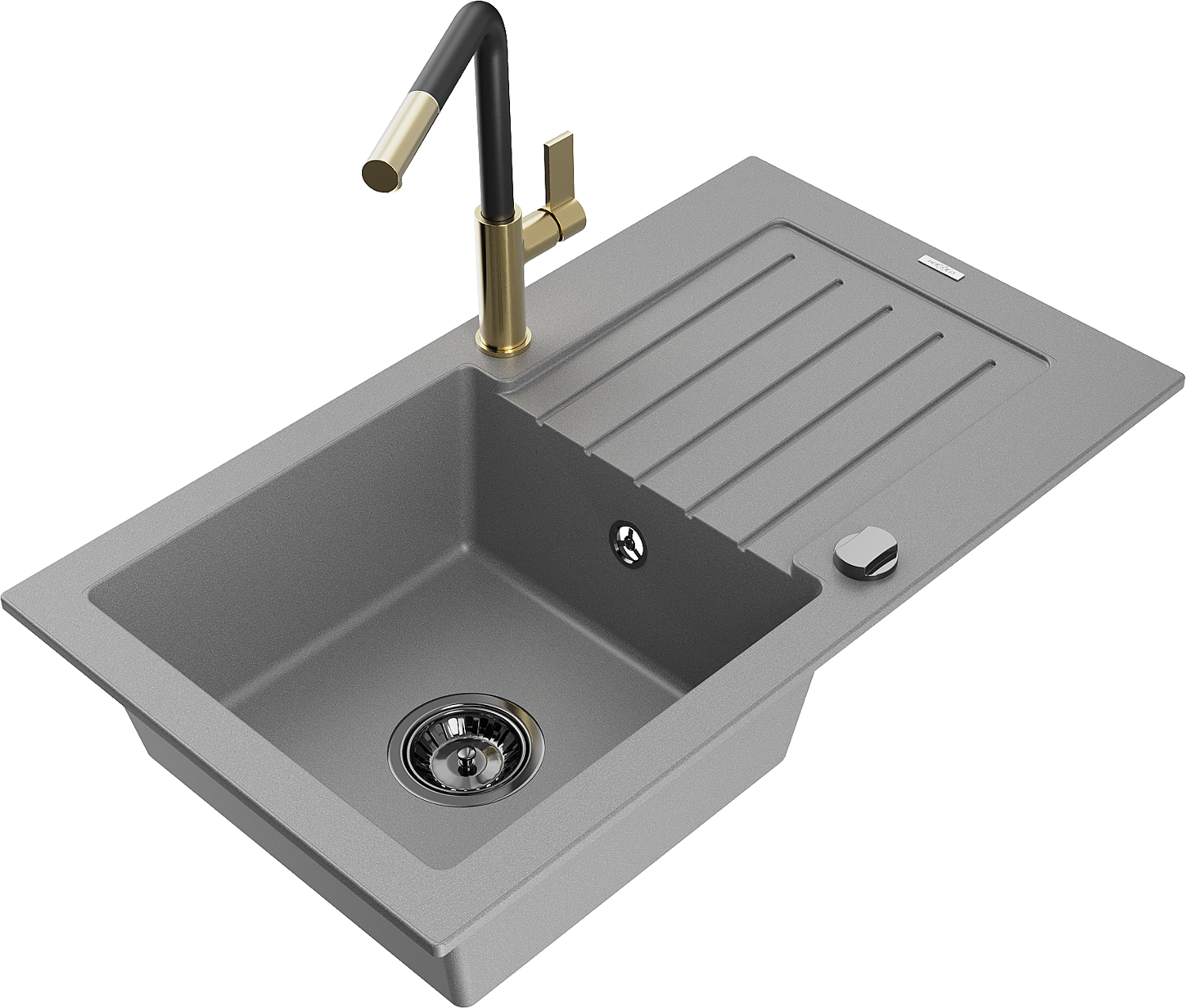 Mexen Pablo granit izlietne ar 1 nodalījumu, noteka un virtuves jaucējkrānu Flora, pelēks - 6510-71-670401-57-B