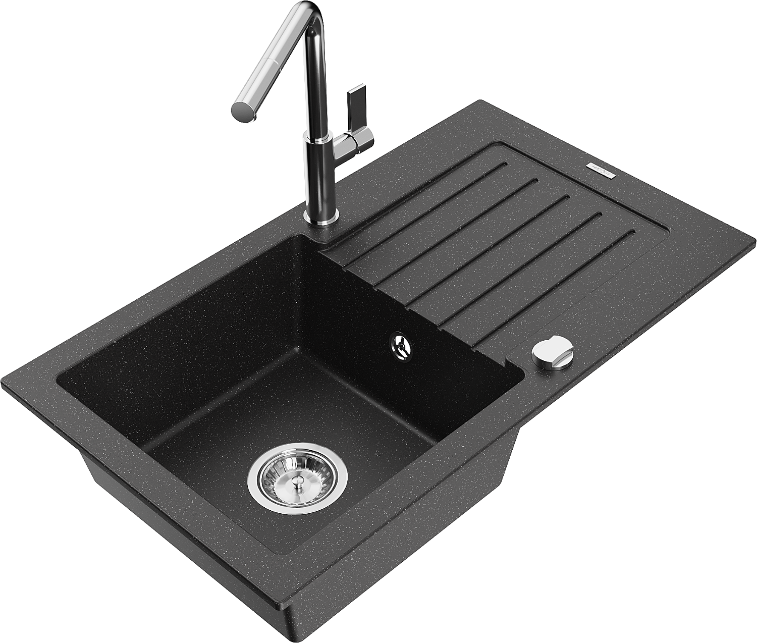 Mexen Pablo granitizlietne 1-kameras ar noteces un virtuves jaucējkrāns Flora, melns/sudraba metālisks - 6510-73-670401-00