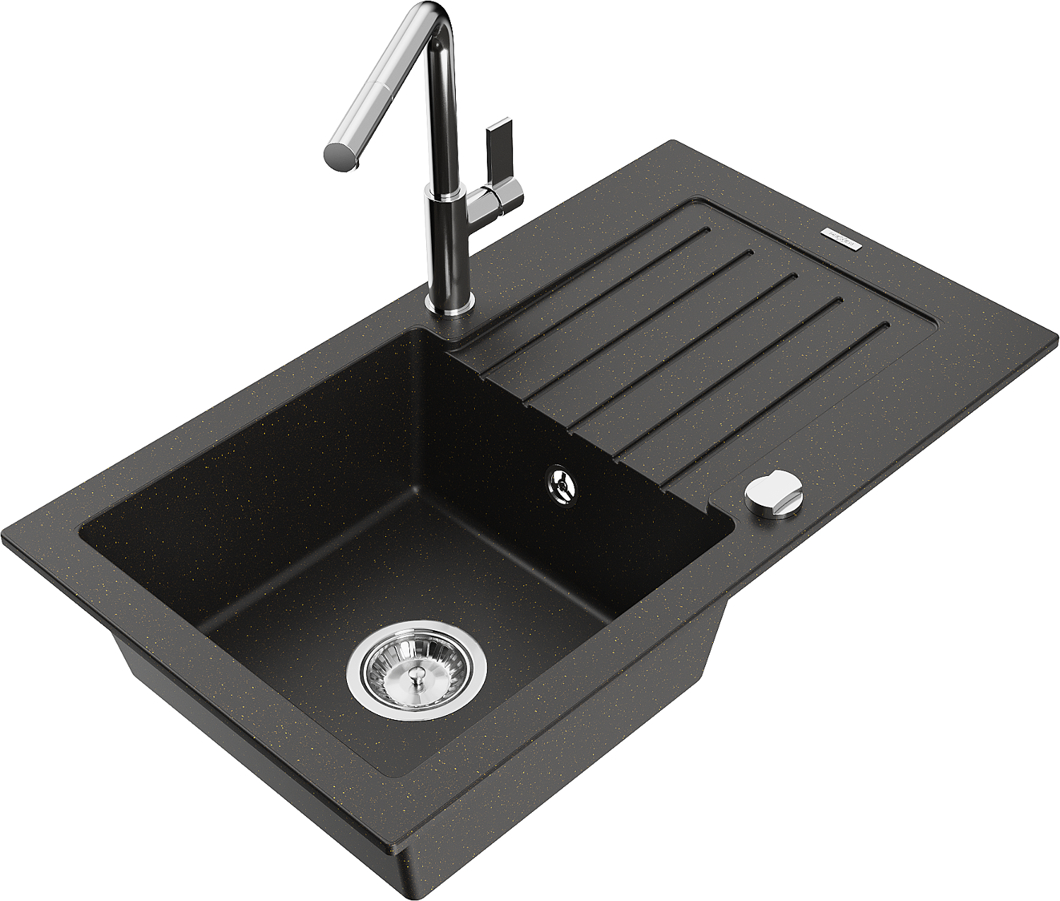 Mexen Pablo granitizlietne ar 1 nodalījumu ar noteces virsmu un virtuves krānu Flora, melna/zeltīta metālika - 6510-75-670401-00