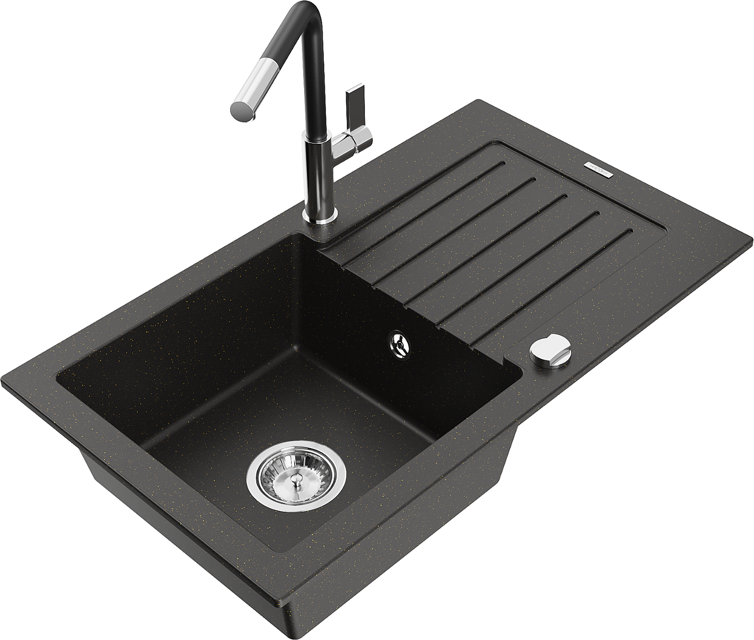 Mexen Pablo granitizlietne 1-kameras ar noteci un virtuves krāns Flora, melns/zeltains metālisks - 6510-75-670401-07