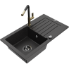 Mexen Pablo granitēta izlietne ar 1 nodalījumu, noteku un virtuves jaucējkrānu Flora, melna ar punktiem - 6510-76-670401-57-B
