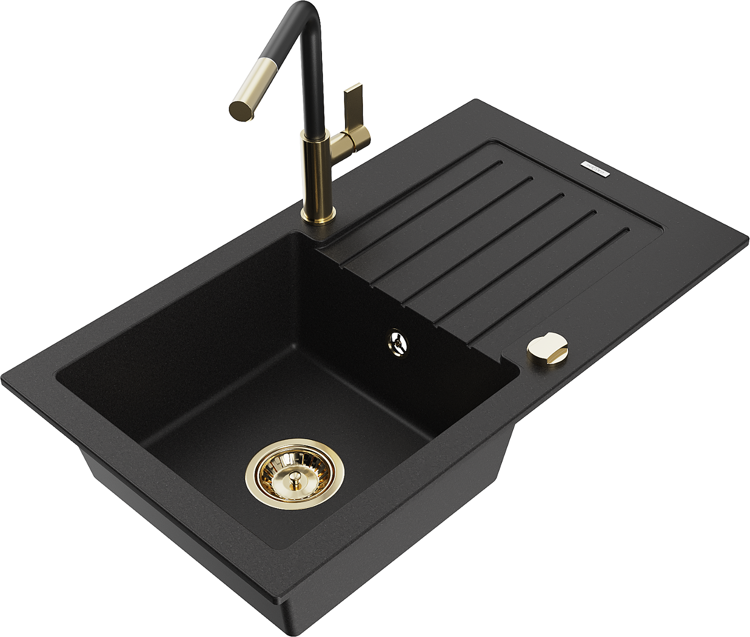 Mexen Pablo vienas durvju izlietne no granīta ar noteku un virtuves jaucējkrānu Flora, melna - 6510-77-670401-57-G