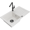 Mexen Pablo granitē izlietne ar vienu nodalījumu, ar noteces zonu un virtuves jaucējkrānu Flora, melna - 6510-77-670401-70-B