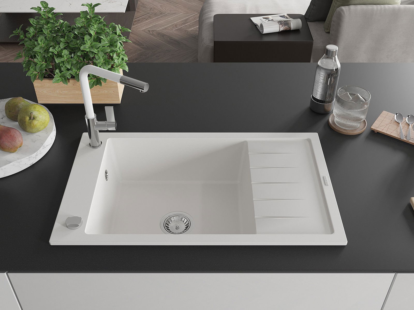 Izlietnes virsma ir izturīga pret traipiem un krāsas izmaiņām, tāpēc to ir viegli uzturēt tīru un tā saglabā savu krāsu ilgu lietošanas laiku. Estētiski un praktiski papildina jebkuru virtuvi.