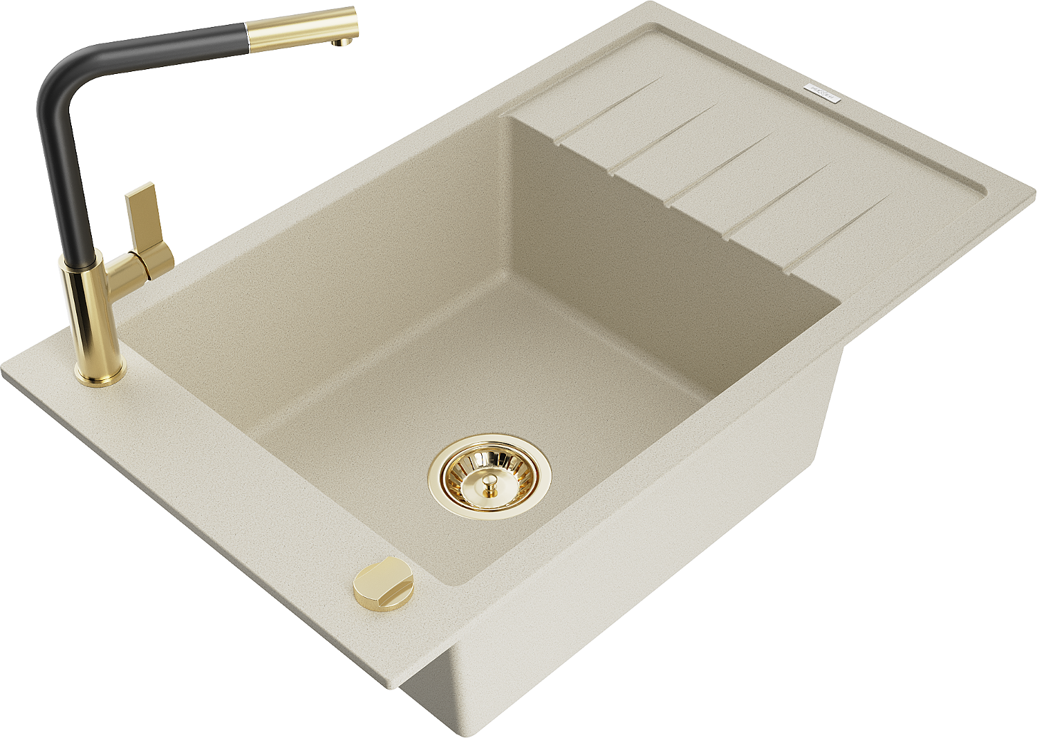 Mexen Elias granitā izlietne ar vienu nodalījumu un nosusinātāju un Flora virtuves krānu, bēšs - 6511-69-670401-57-G
