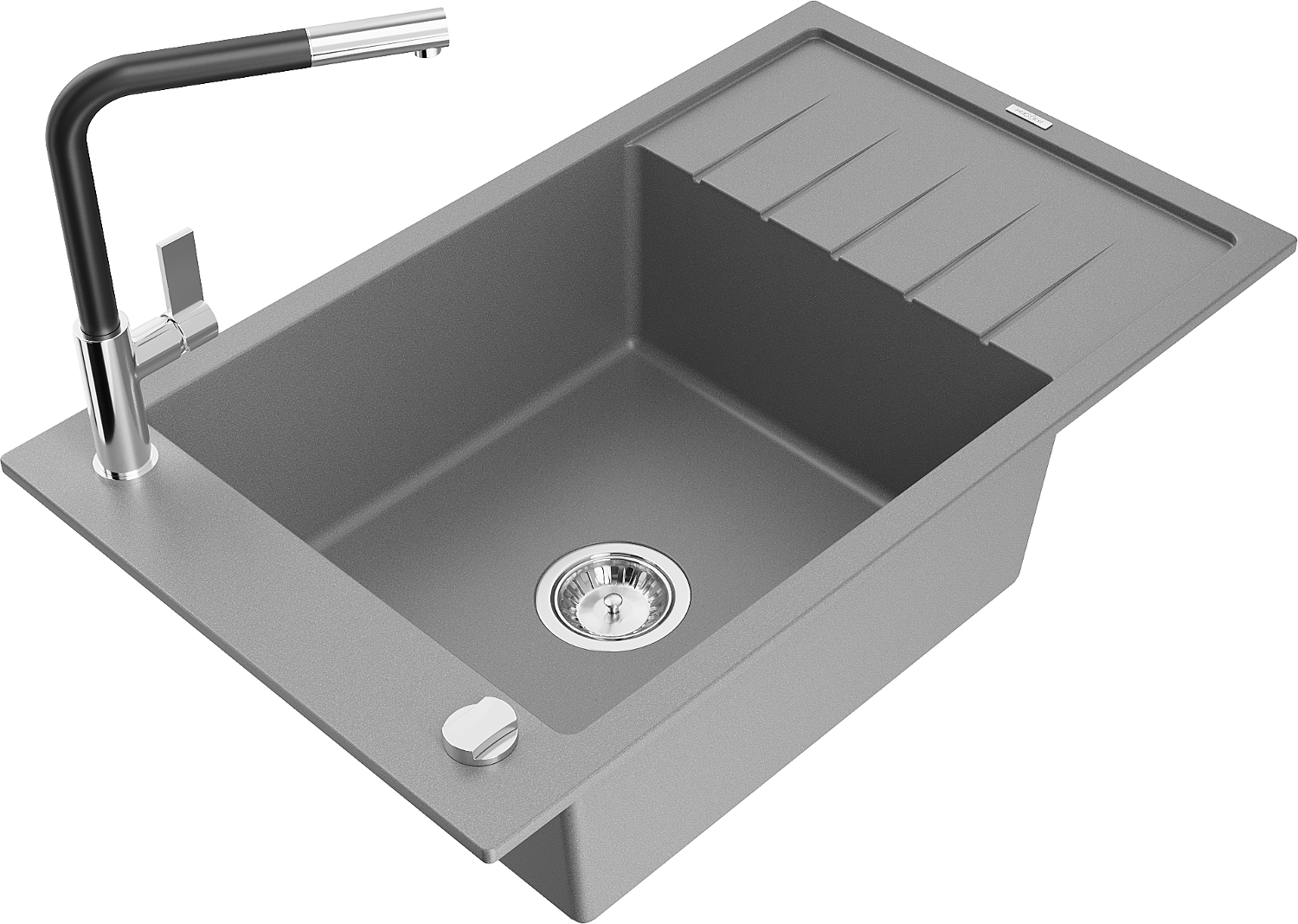 Mexen Elias granitizlietne ar vienu nodalījumu un noteces virsmu, un virtuves jaucējkrānu Flora, pelēka - 6511-71-670401-07