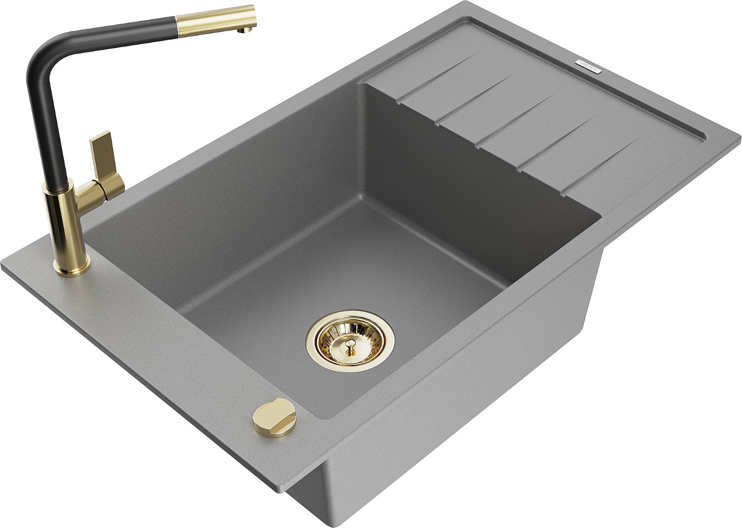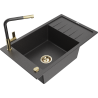 Mexen Elias vienkameras granīta izlietne ar noteces ligzdu un virtuves jaucējkrānu Flora, pelēka - 6511-71-670401-57-G