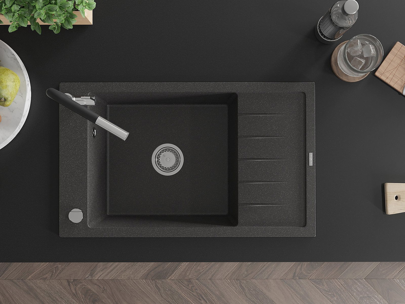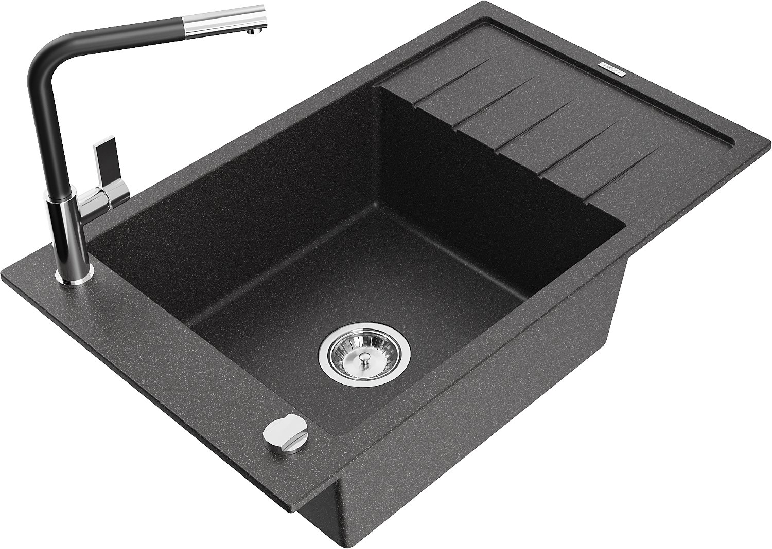 Mexen Elias granitizlietne vienkameras ar drenāžu un virtuves jaucējkrāns Flora, melns ar plankumiem - 6511-76-670401-07