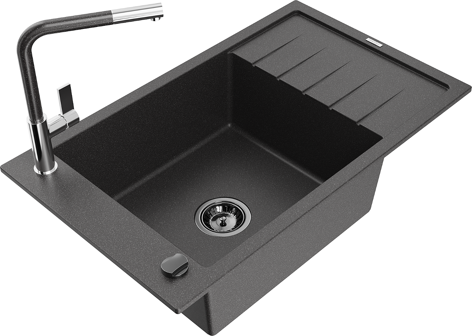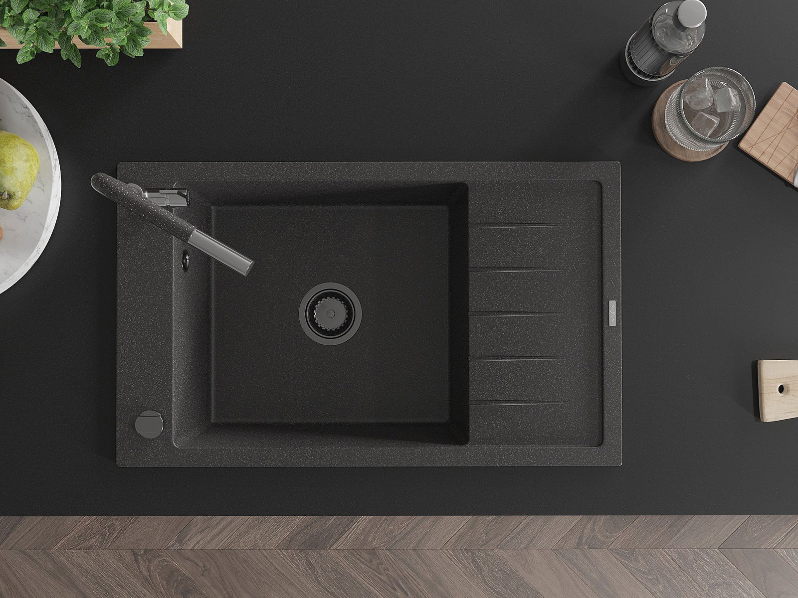 Mexen Elias granitizlietne vienas kameras izlietne ar noteka un virtuves maisītāju Flora, melna ar plankumiem