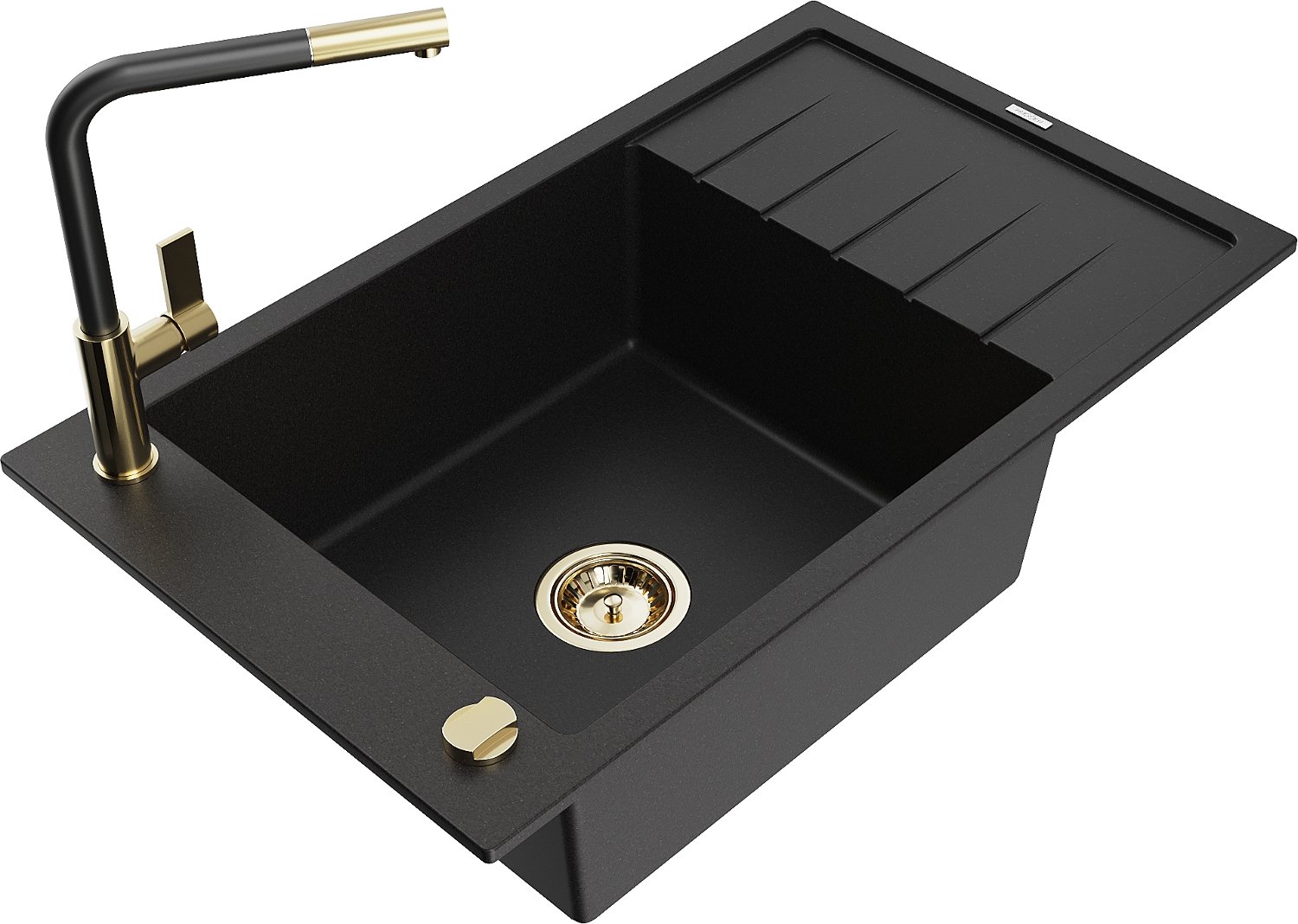 Mexen Elias vienas granīta izlietne ar noteces un virtuves krānu Flora, melna - 6511-77-670401-57-G