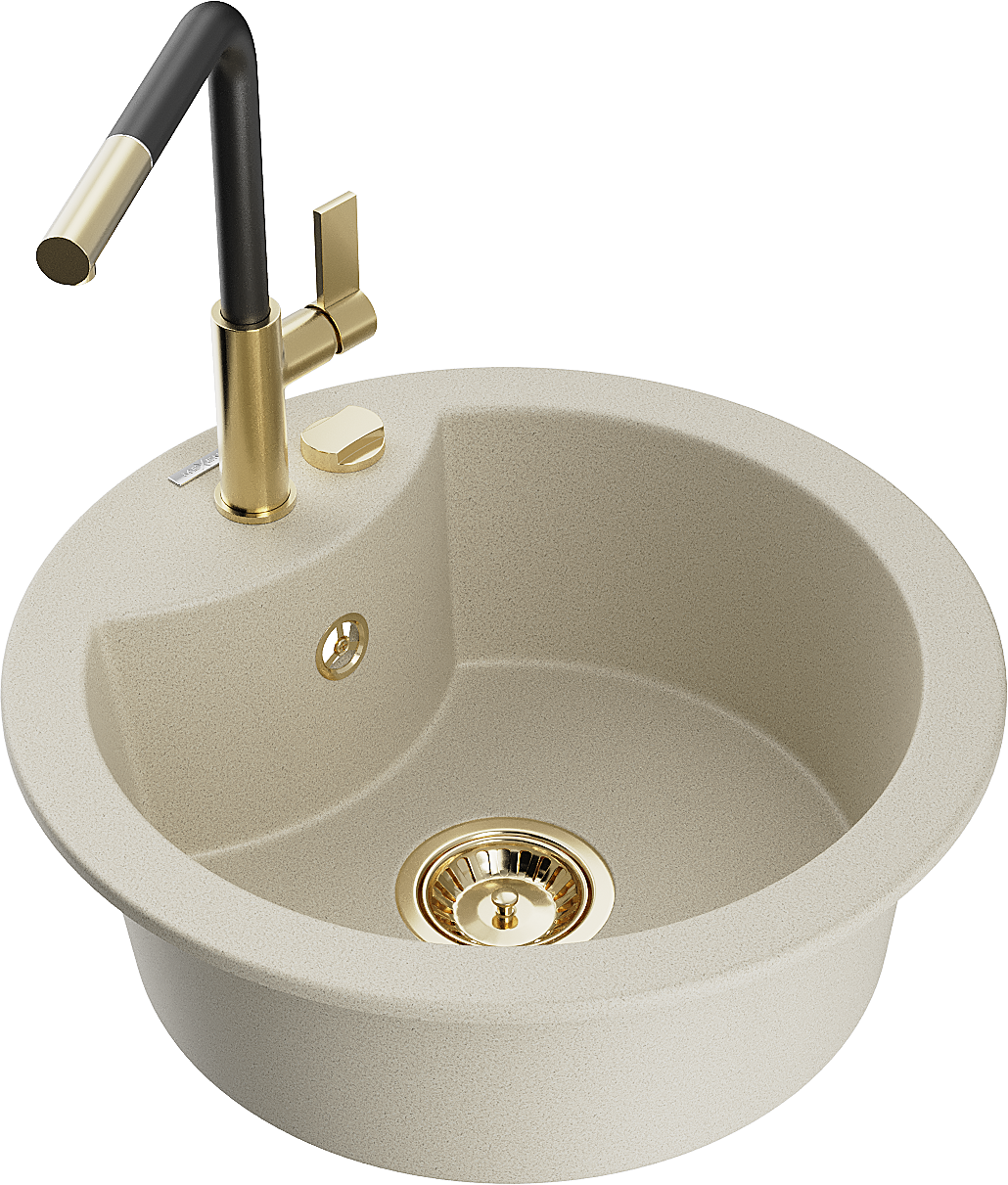Mexen Diego granitais izlietne ar vienu nodalījumu un virtuves jaucējkrānu Flora, bēša - 6512-69-670401-57-G