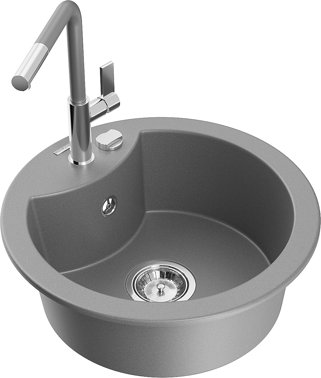 Mexen Diego granitā izlietne ar vienu nodalījumu un virtuves jaucējkrānu Flora, pelēka - 6512-71-670401-06