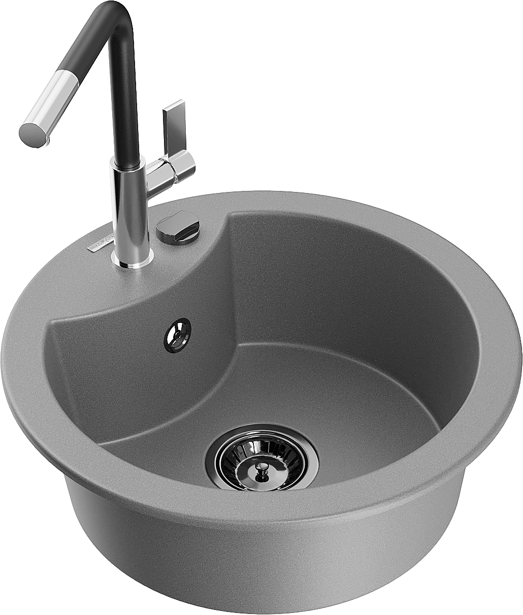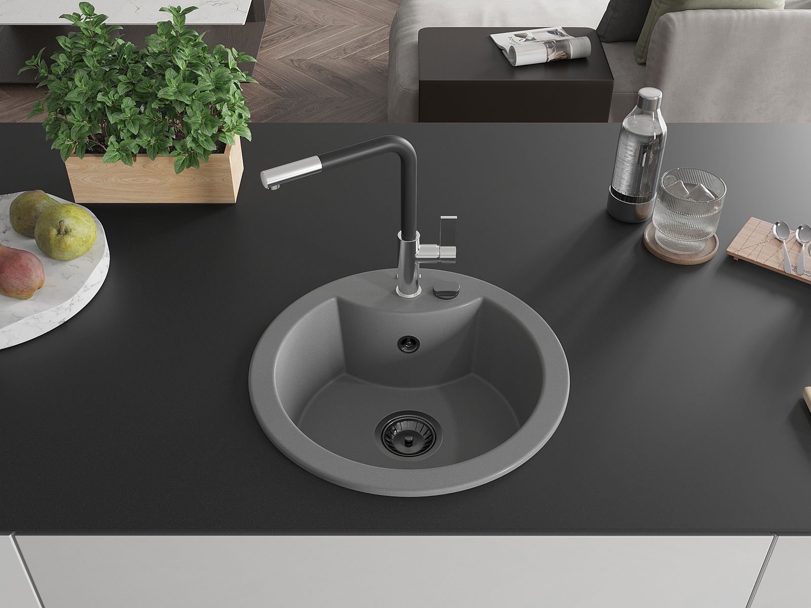 Mexen Diego vienkameras granīta izlietne ar virtuves jaucējkrānu Flora, pelēka - 6512-71-670401-07-B