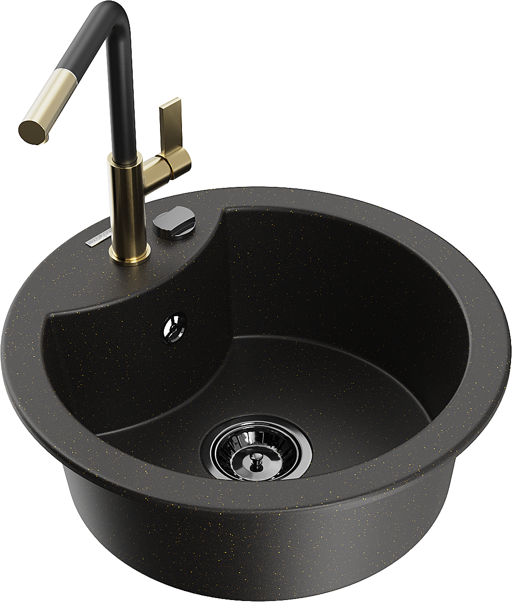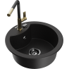 Mexen Diego granitā izlietne ar vienu nodalījumu un virtuves jaucējkrānu Flora, melns/zeltains metālika