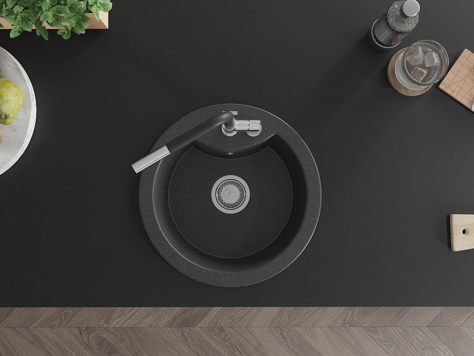 Mexen Diego vienas granīta izlietnes nodalījums ar virtuves jaucējkrānu Flora, melns ar plankumiem - 6512-76-670401-07