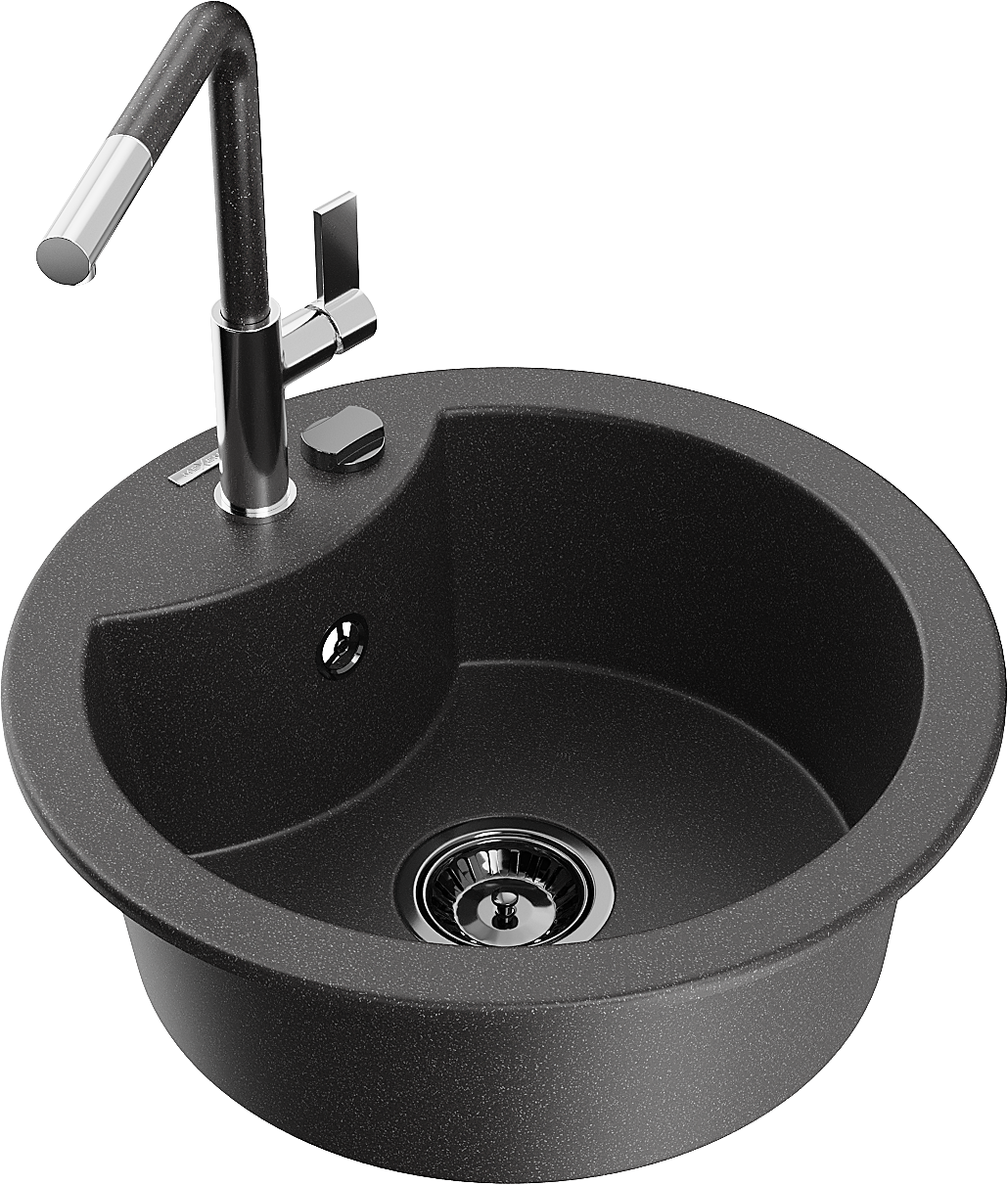 Mexen Diego granīta izlietne ar vienu nodalījumu un virtuves jaucējkrānu Flora, melna raibumaina - 6512-76-670401-08-B