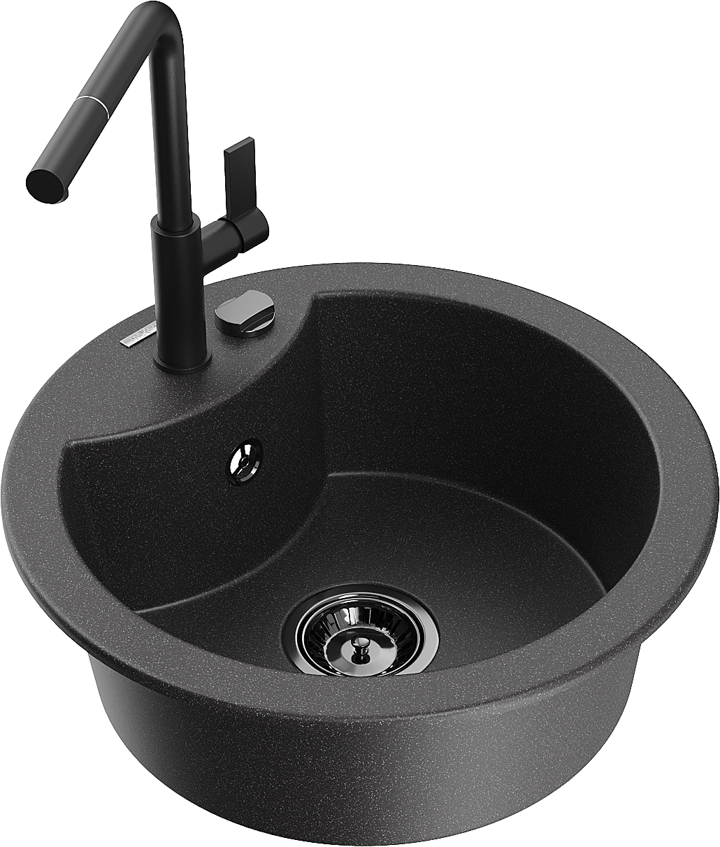 Mexen Diego vienkameras granīta izlietne ar virtuves jaucējkrānu Flora, melnā krāsā ar punktiem - 6512-76-670401-70-B