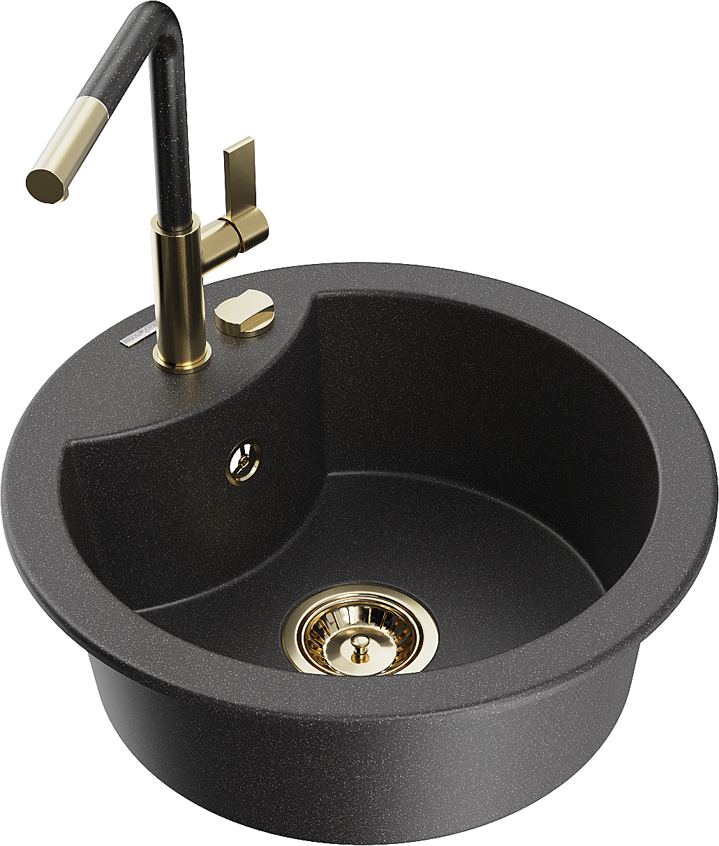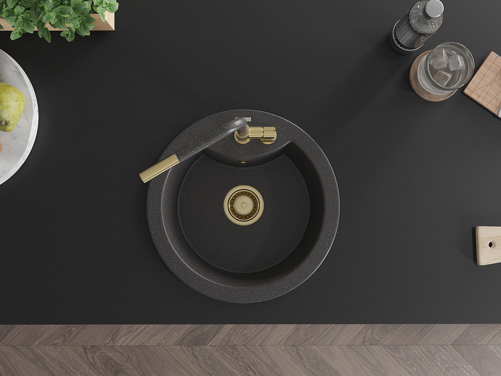Mexen Diego granitizlietne izlietne ar 1 nodalījumu un virtuves jaucējkrānu Flora, melns punktots - 6512-76-670401-75-G