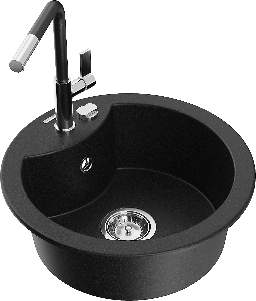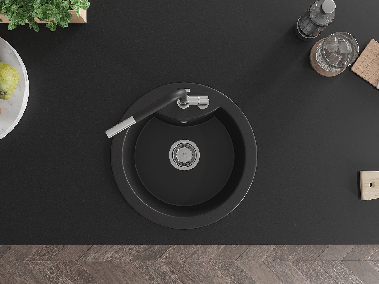Mexen Diego granīta izlietne ar 1 nodalījumu un virtuves jaucējkrānu Flora, melna - 6512-77-670401-07