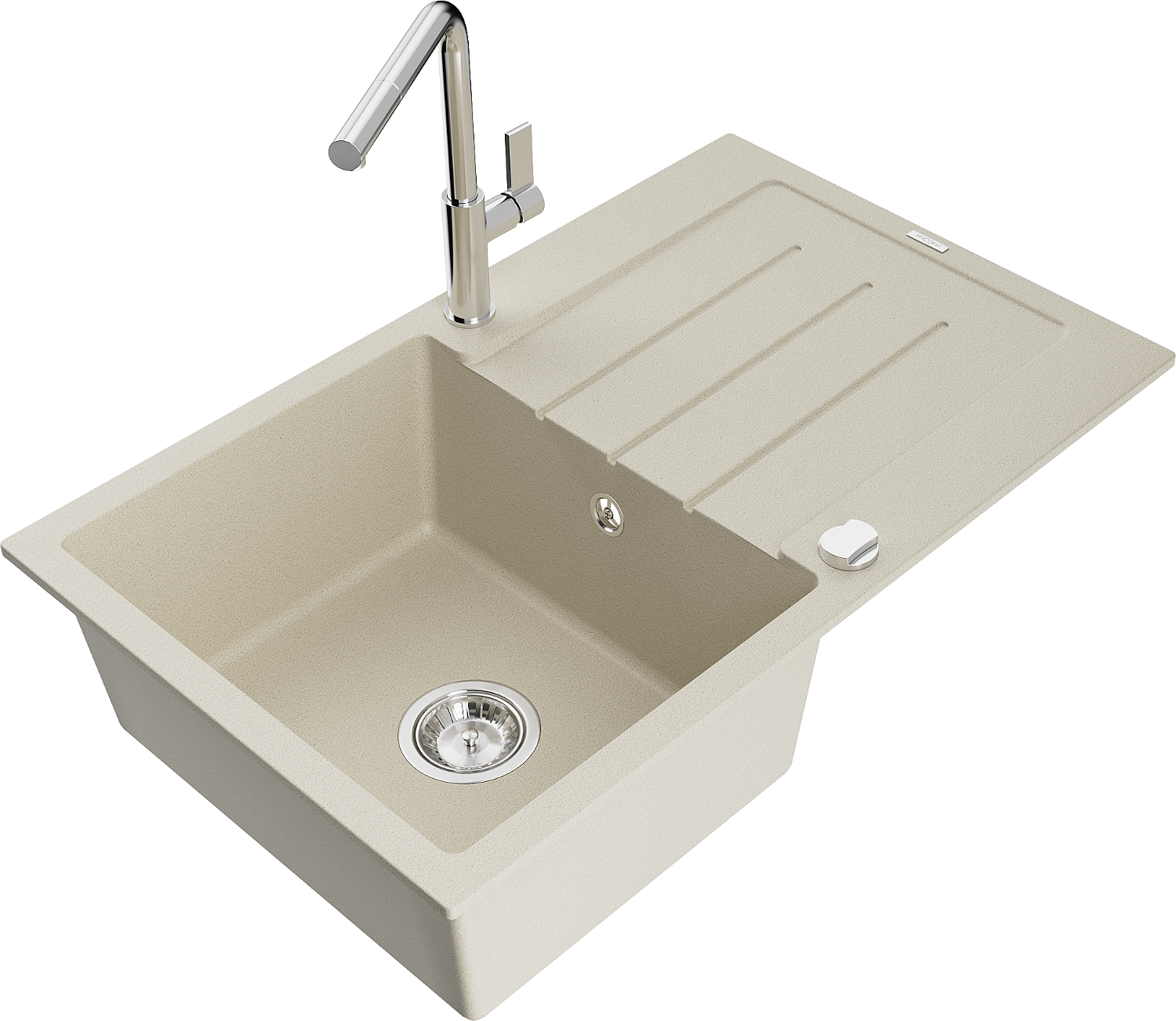 Mexen Bruno granīta virtuves izlietne ar vienu nodalījumu un noteku, ar Flora virtuves jaucējkrānu, bēša - 6513-69-670401-00