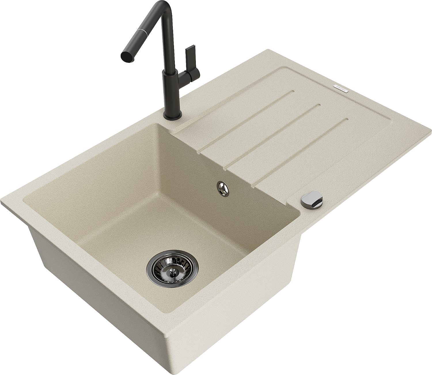 Mexen Bruno Granit izlietne ar 1 nodalījumu un noteku un Flora virtuves jaucējkrānu, bēšs - 6513-69-670401-70-B