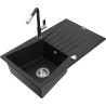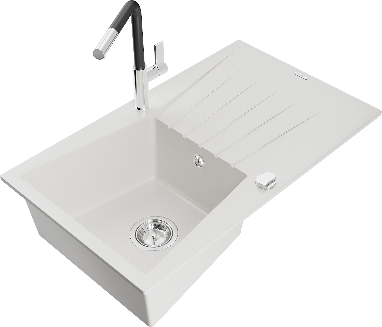 Mexen Cesar granitizlietne ar vienu nodalījumu un atloku, un virtuvmes krānu Flora, balts - 6514-20-670401-07