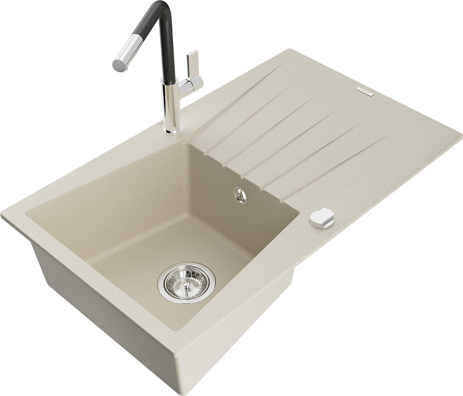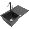 Mexen Cesar granit izlietne ar vienu nodalījumu, ar noteces galdiņu un virtuves jaucējkrānu Flora, bēša - 6514-69-670401-07