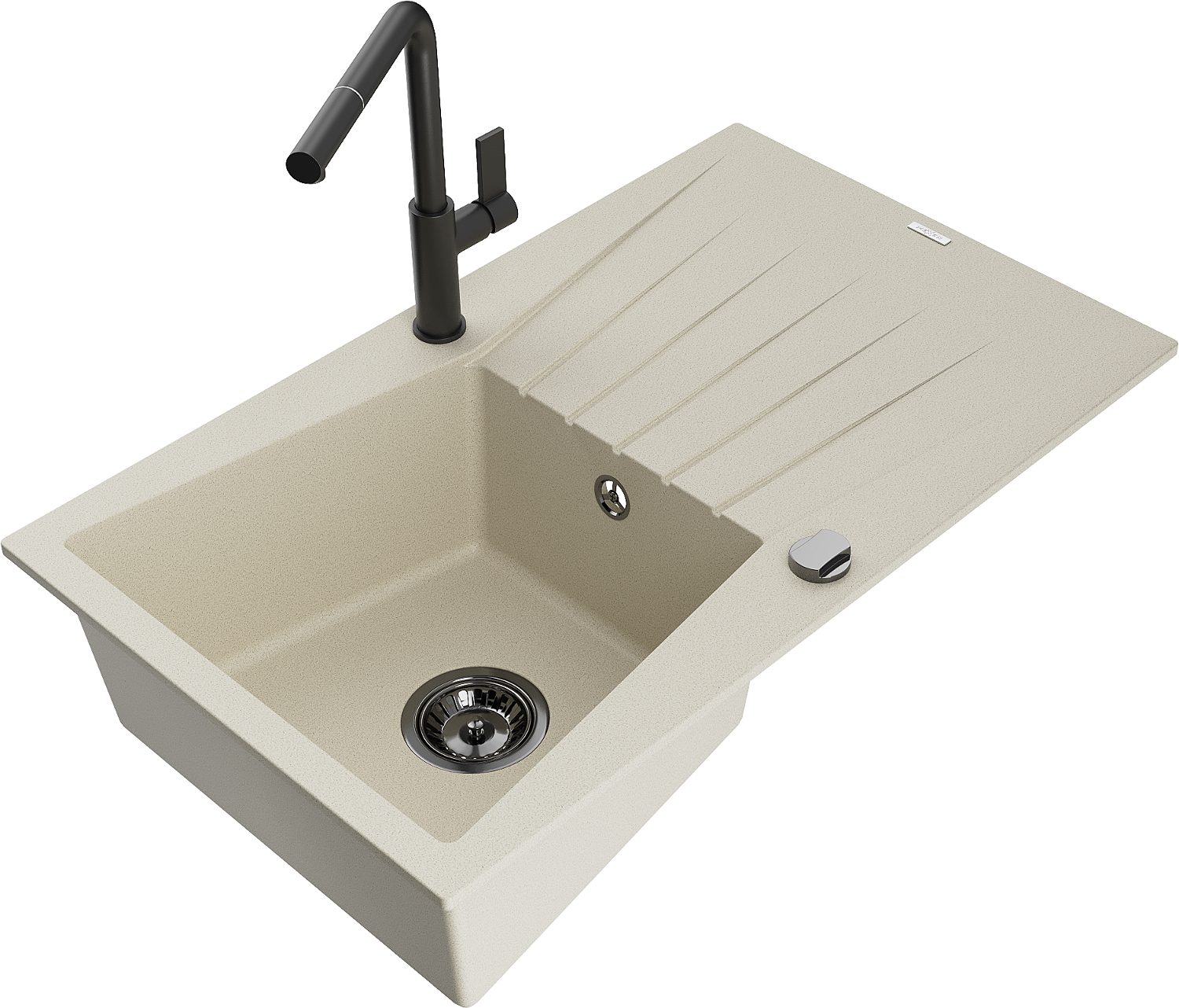 Mexen Cesar granīta izlietne ar vienu nodalījumu un noteces virsmu, ar Flora virtuves jaucējkrānu, bēšs - 6514-69-670401-70-B