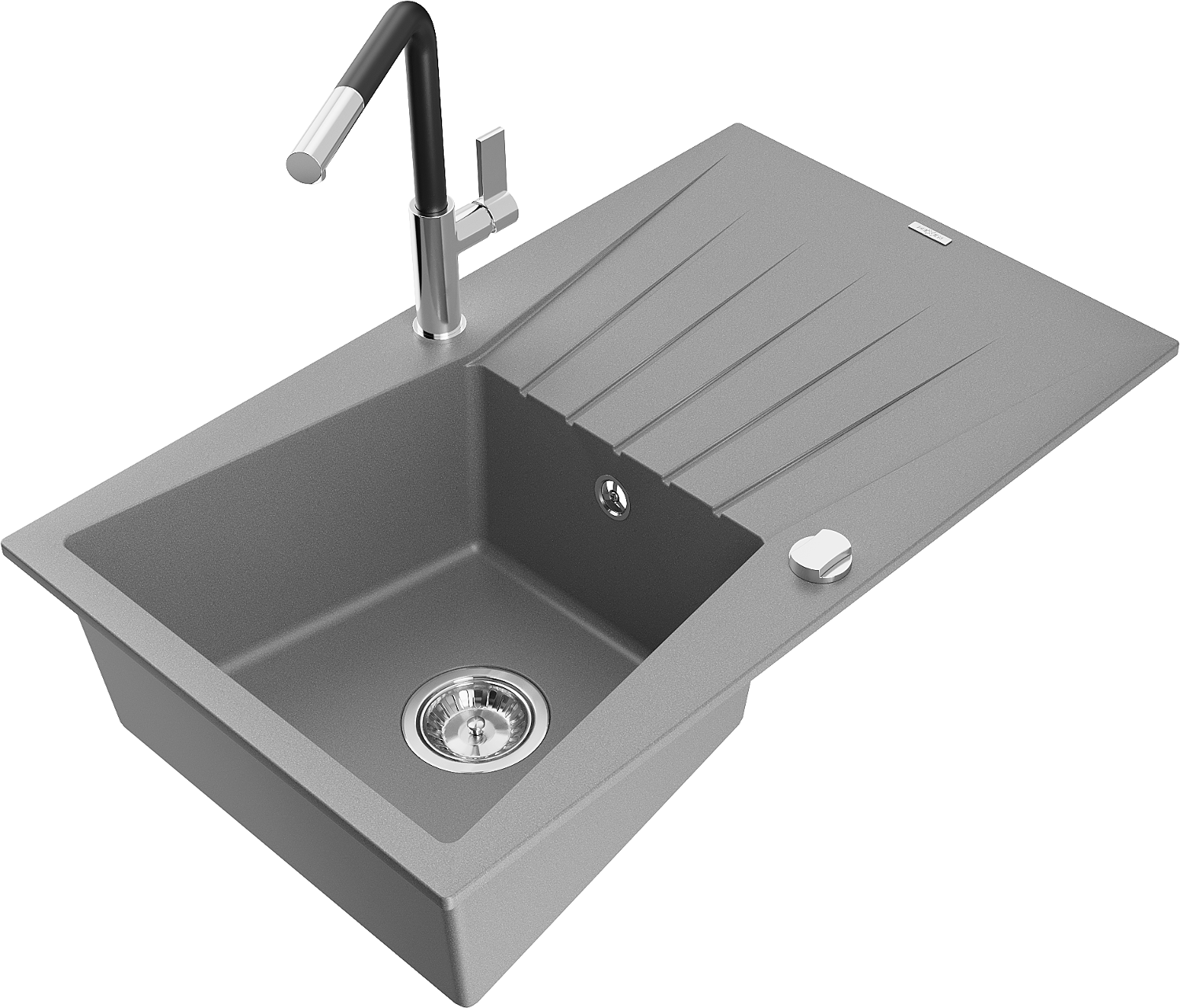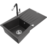 Mexen Cesar granitizlietne ar vienu nodalījumu, drenāžu un virtuves jaucējkrānu Flora, pelēks - 6514-71-670401-07
