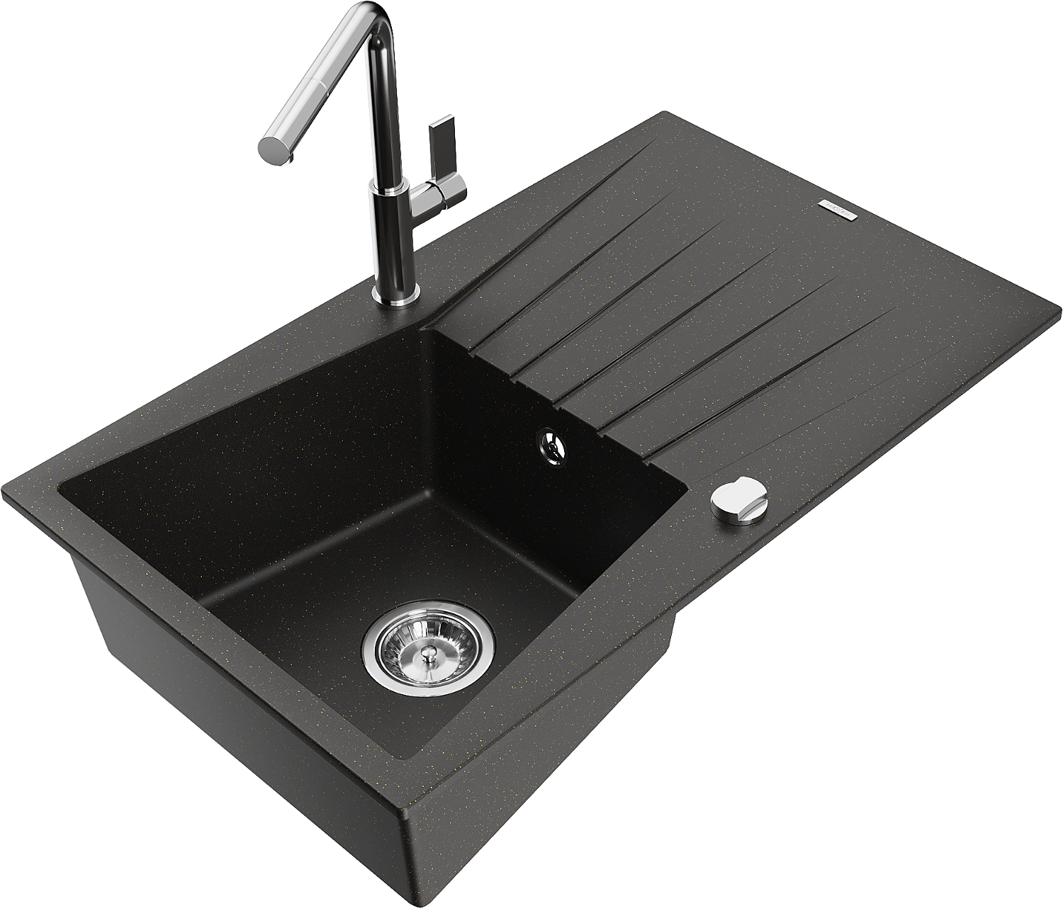 Mexen Cesar granitizlietne ar vienu nodalījumu, noteces un virtuves jaucējkrānu Flora, melna/zeltīta metālisks
