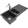Mexen Andres granīta izlietne ar 1,5 kamerām un noteces zonu un virtuves jaucējkrānu Flora, bēšs - 6515-69-670401-09
