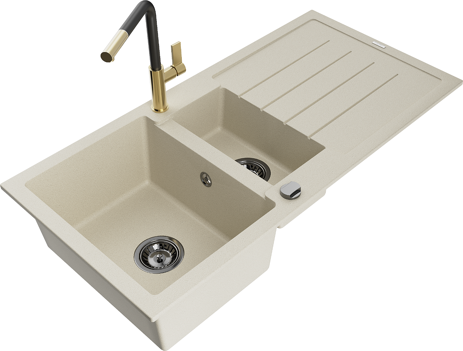 Mexen Andres granitais izlietnes 1,5 nodalījums ar noteku un Flora virtuves krānu, bēšs - 6515-69-670401-57-B