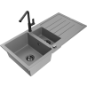 Mexen Andres granīta izlietne 1,5 nodalījuma ar notecētāju un virtuves jaucējkrānu Flora, bēšs - 6515-69-670401-70-B