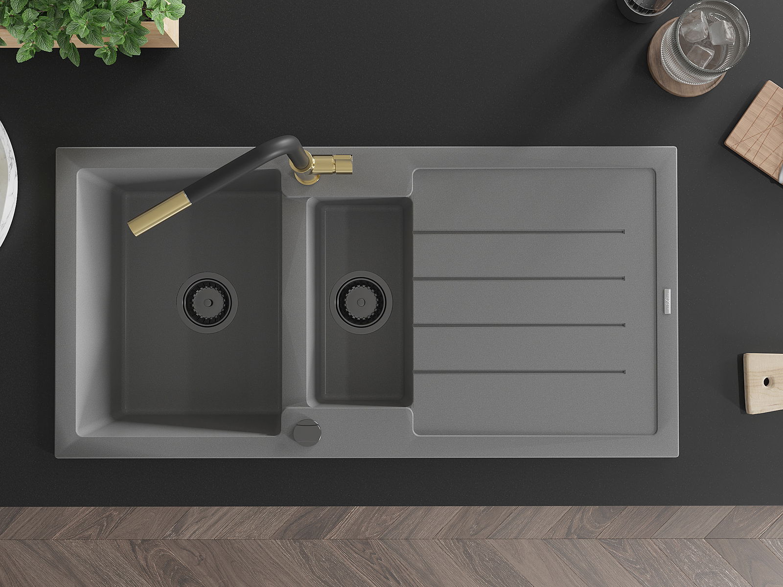 Mexen Andres granitlējķis ar 1,5 nodalījumiem un notekplāksni un Flora virtuves jaucējkrānu, pelēks - 6515-71-670401-57-B