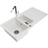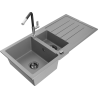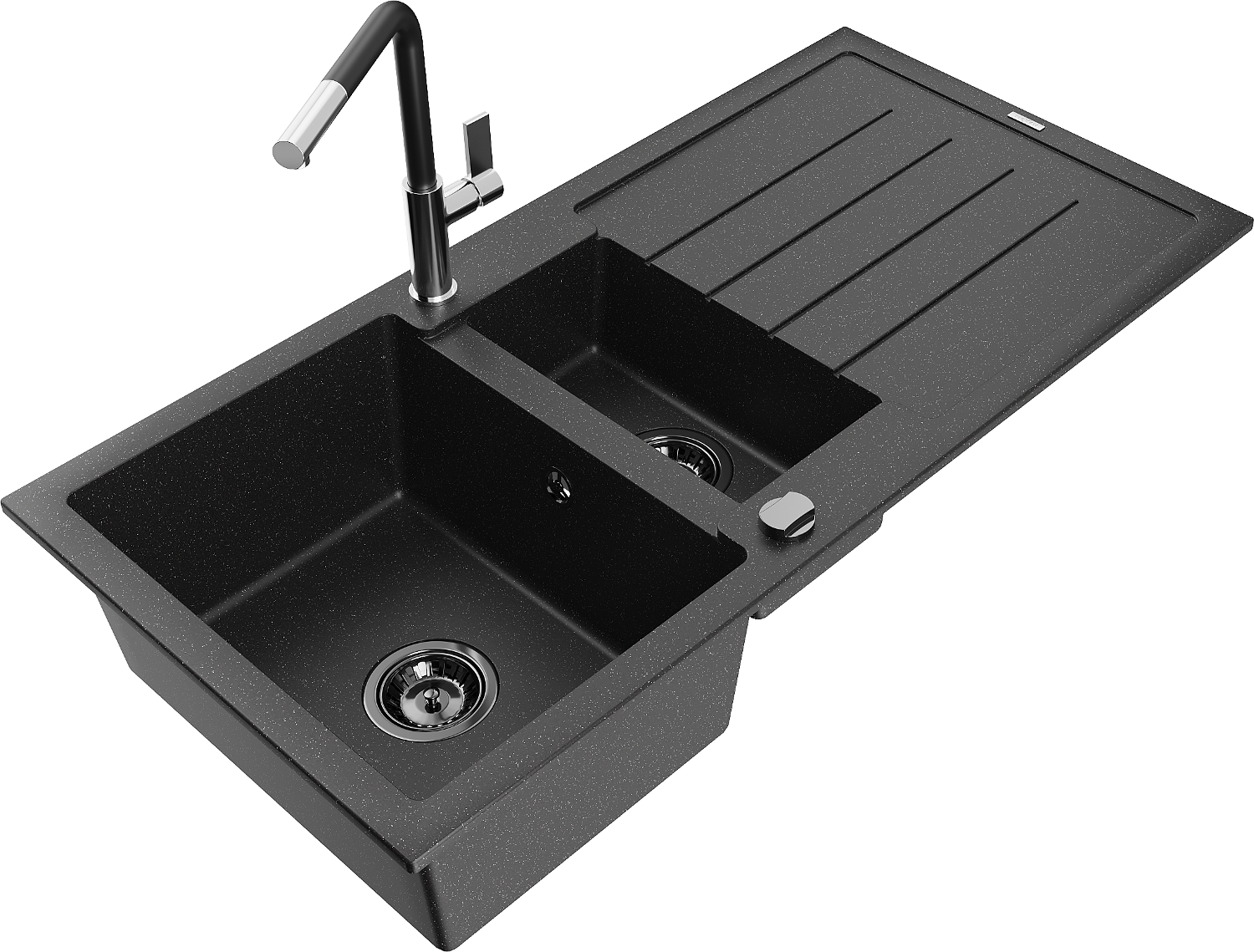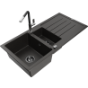 Mexen Andres granitizlietne ar 1,5 nodalījumu un kanalizācijas piederumiem un virtuves jaucējkrānu Flora, melns/sudraba
