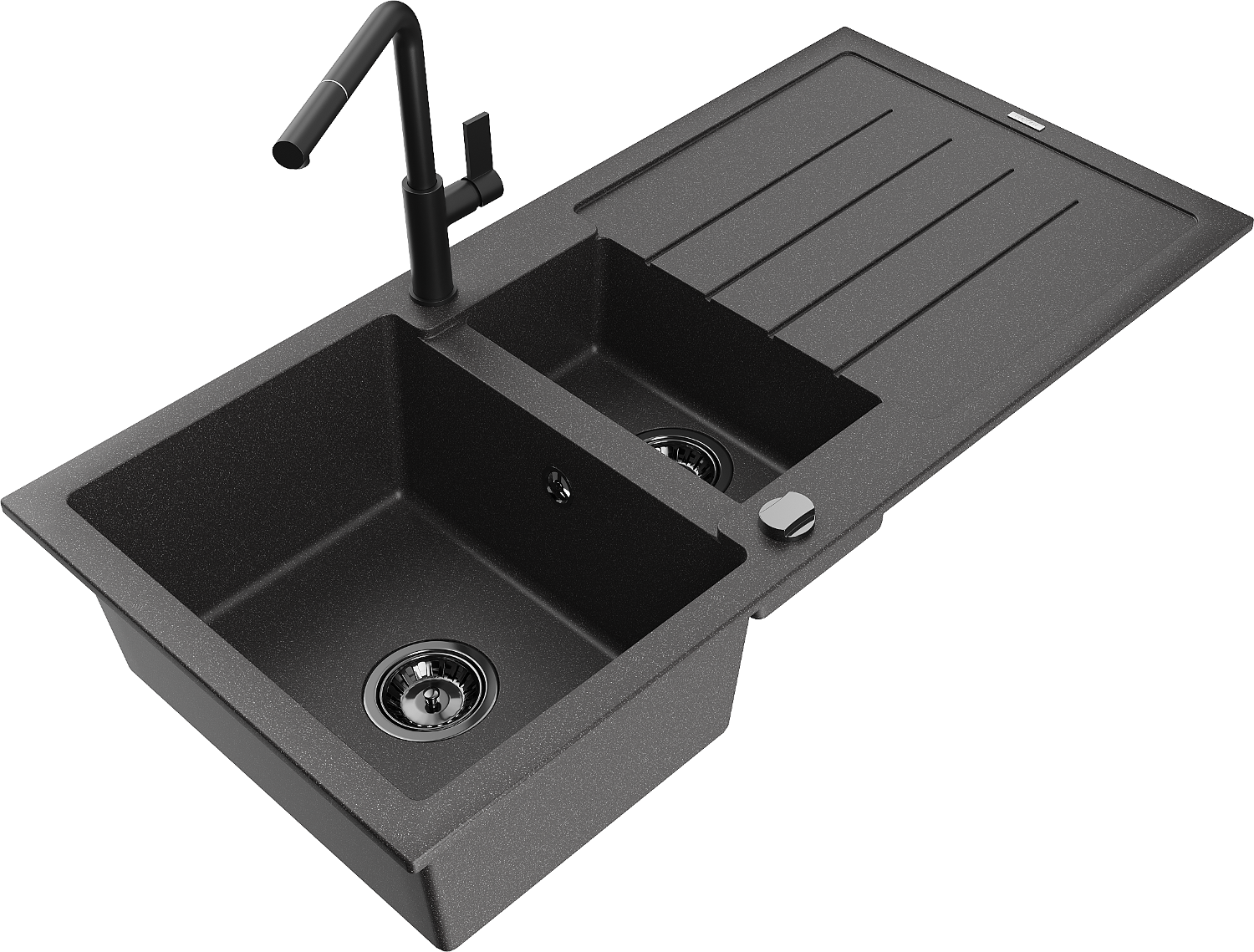 Mexen Andres granit izlietne ar 1,5 nodalījumu, noteces un Flora virtuvju jaucējkrānu, melna ar plankumiem - 6515-76-670401-70-B