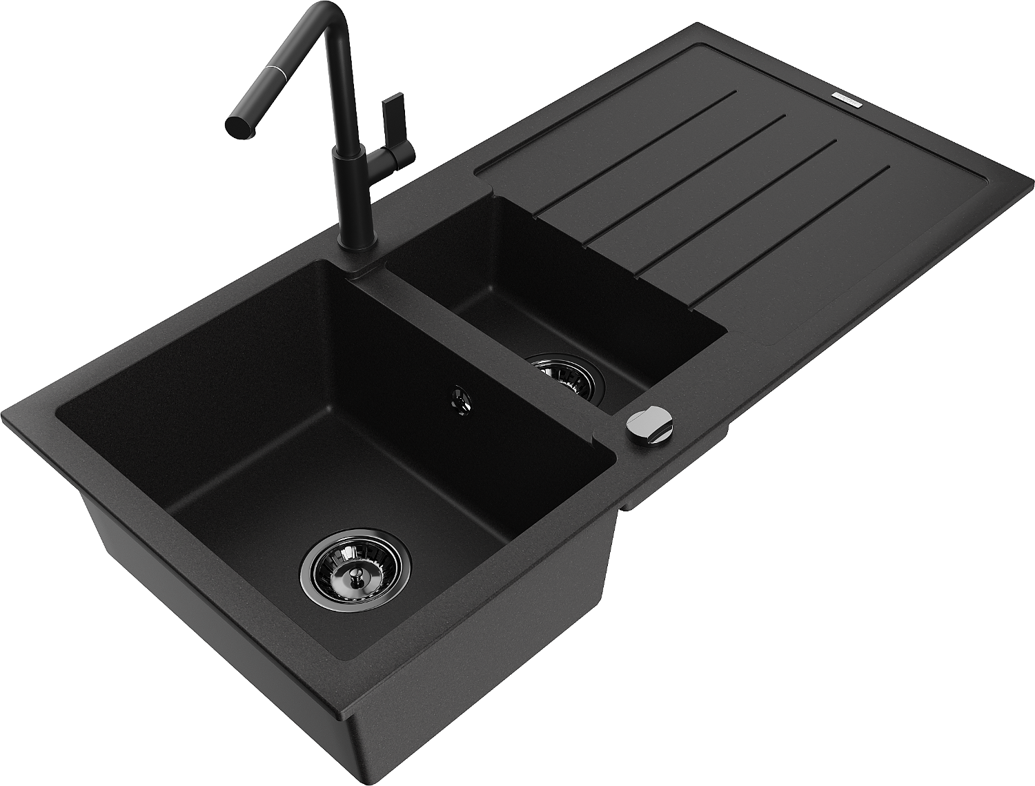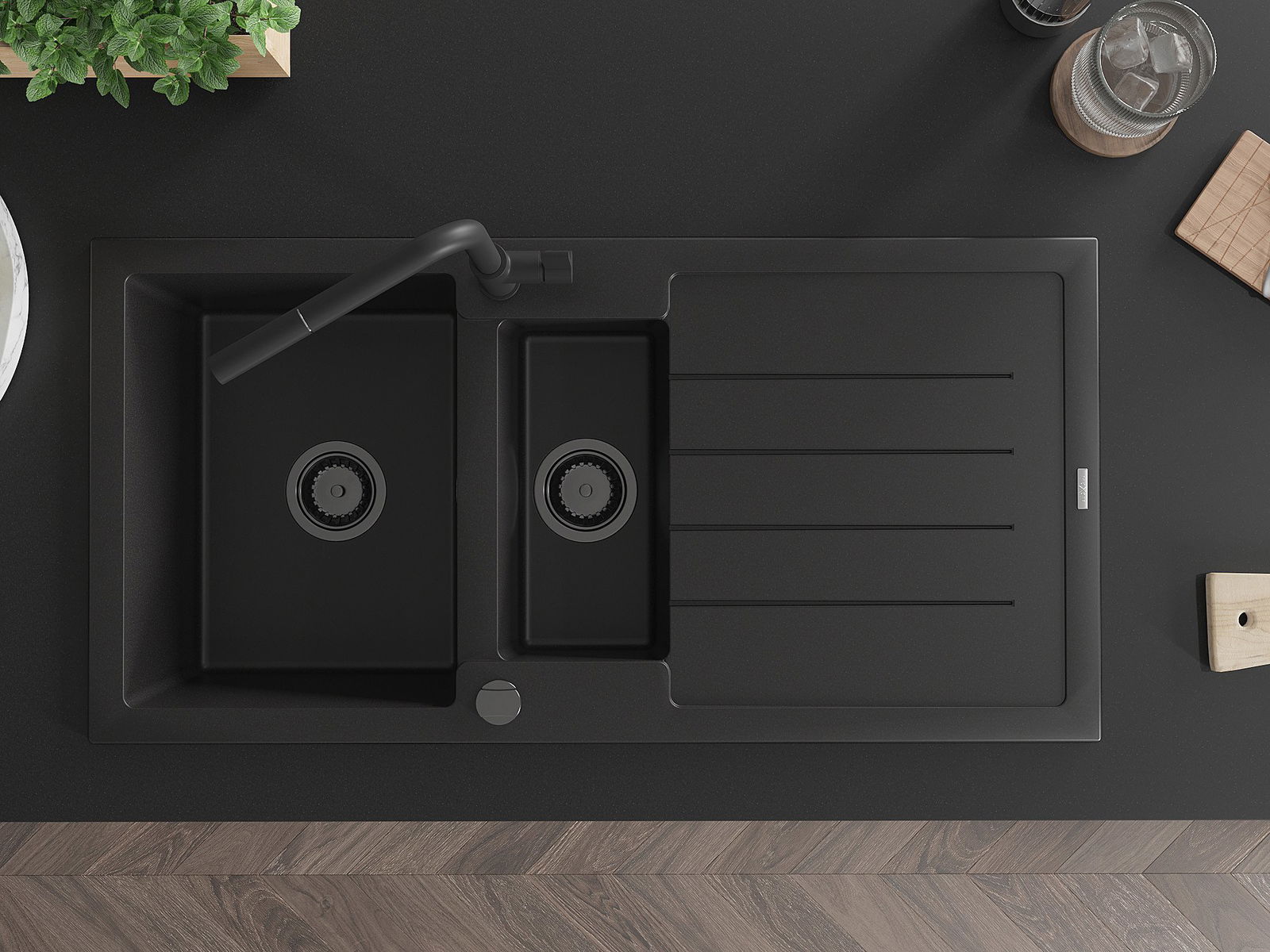 Mexen Andres granitizlietne 1,5 nodalījuma ar noteces un virtuves krānu Flora, melns - 6515-77-670401-70-B