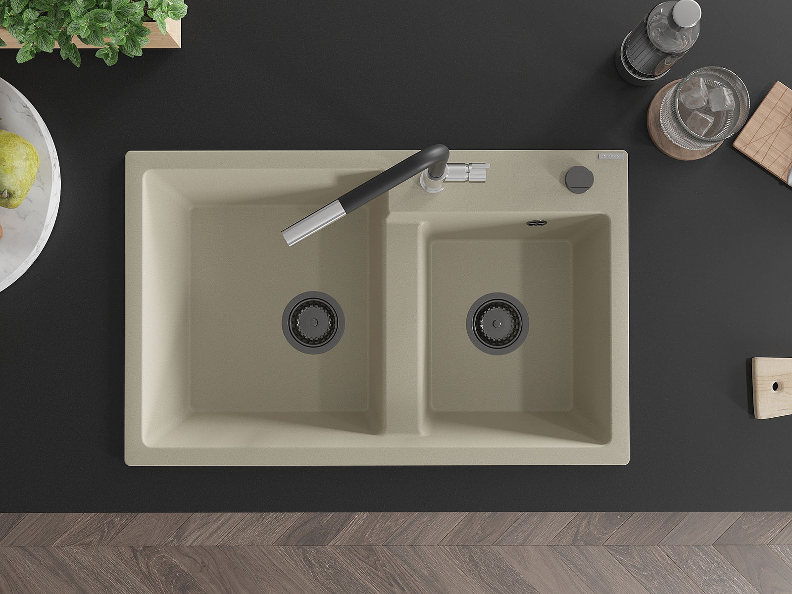 Mexen Tomas granitizlietne ar divām nodalījumiem un Flora virtuves jaucējkrānu, bēša - 6516-69-670401-07-B