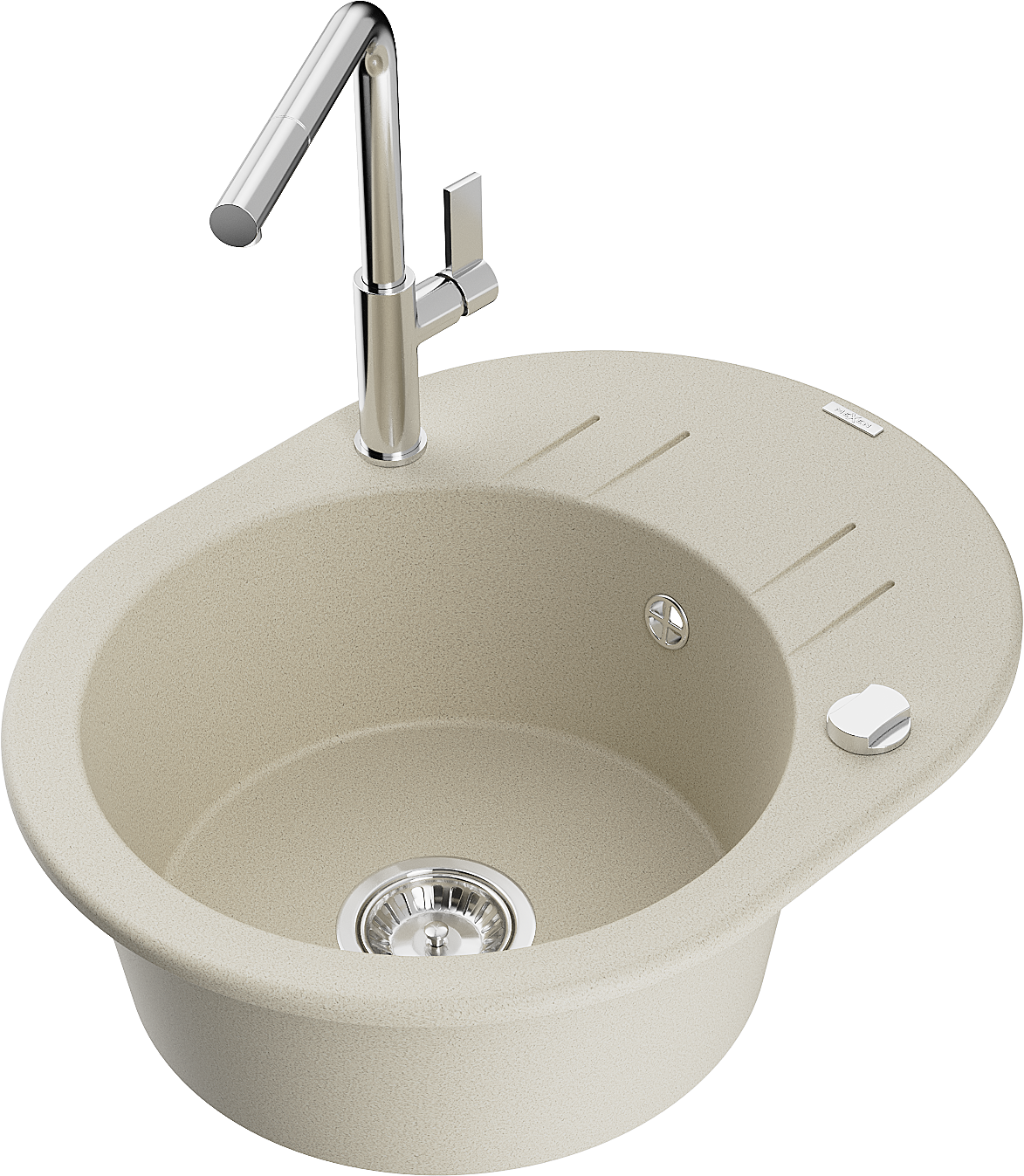 Mexen Kevin granitizlietne ar vienu nodalījumu un notekas plauktu un virtuves jaucējkrānu Flora, bēšs - 6517-69-670401-00