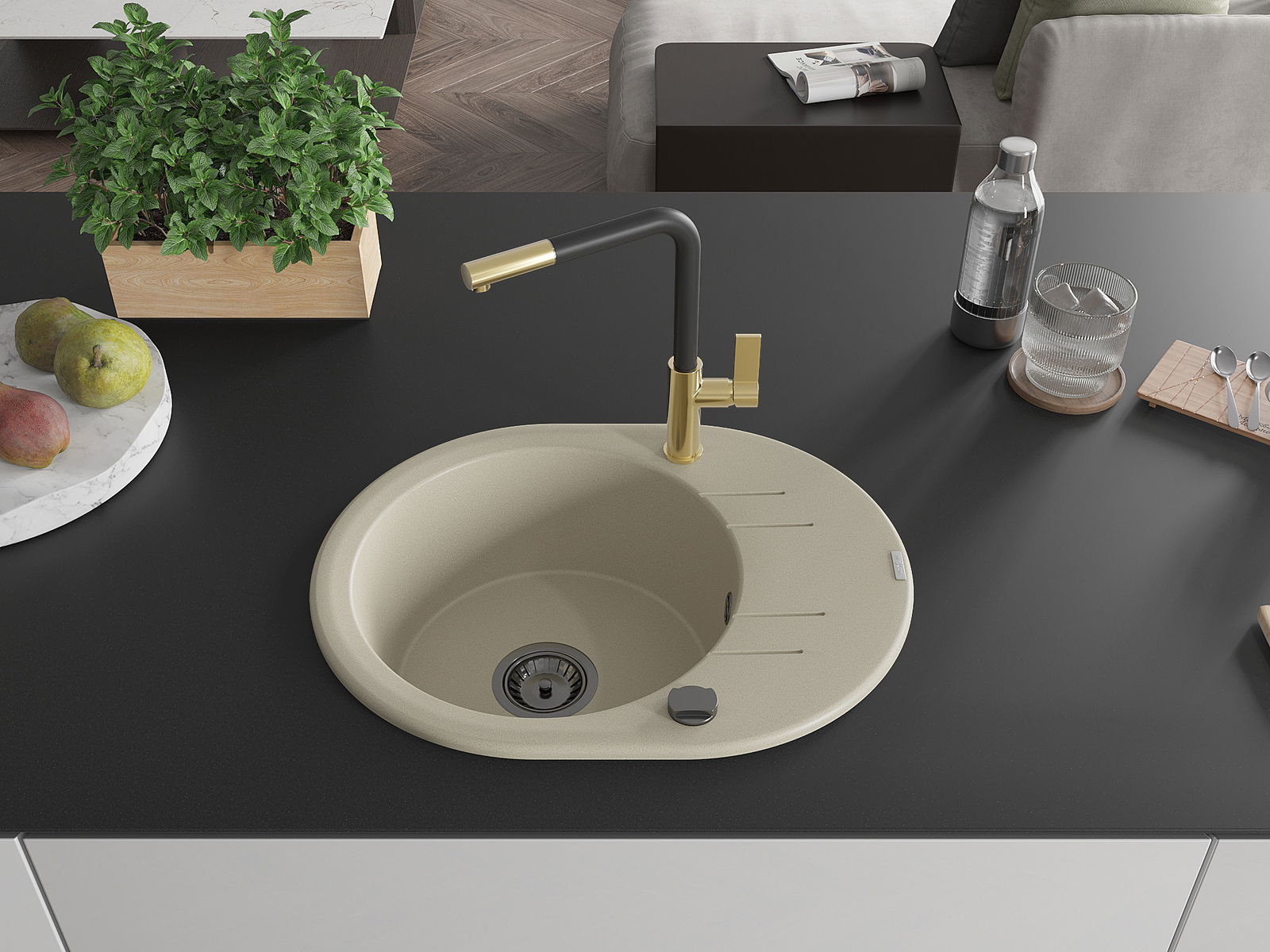 Izlietnes virsma ir izturīga pret traipiem un krāsas izmaiņām, tāpēc to ir viegli uzturēt tīru un tā saglabā savu krāsu ilgu lietošanas laiku. Estētiski un praktiski papildina jebkuru virtuvi.