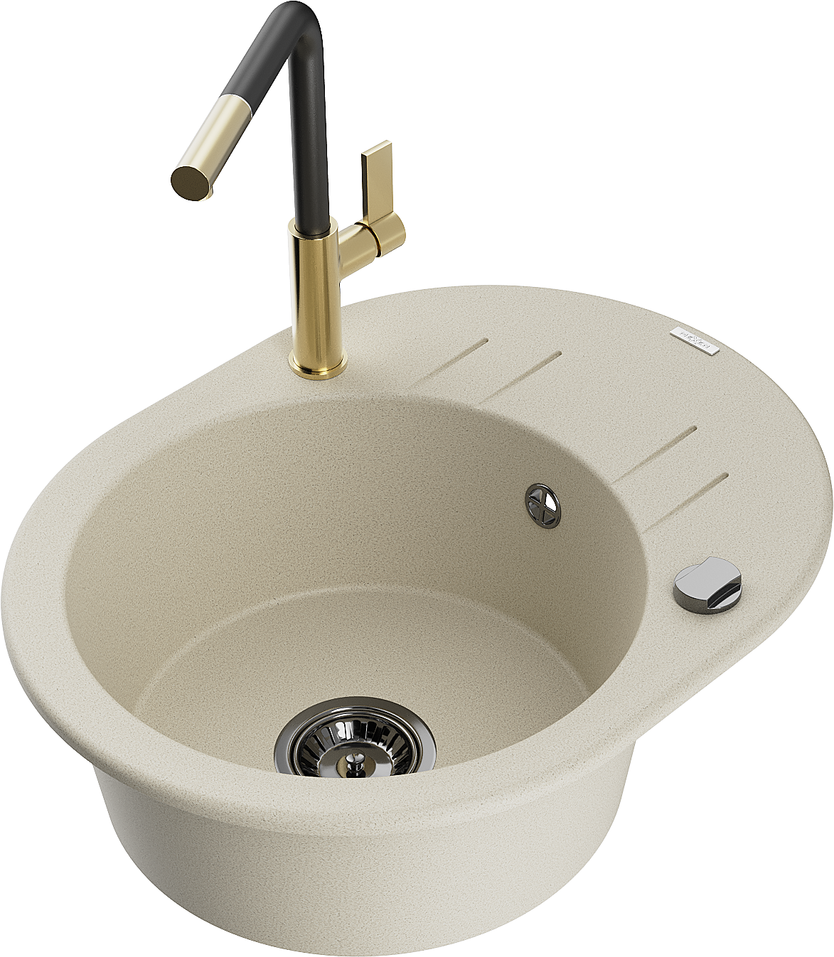 Mexen Kevin granit izlietne ar vienu nodalījumu ar noteku un virtuves jaucējkrānu Flora, bēša - 6517-69-670401-57-B