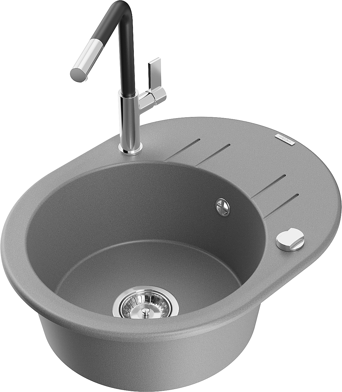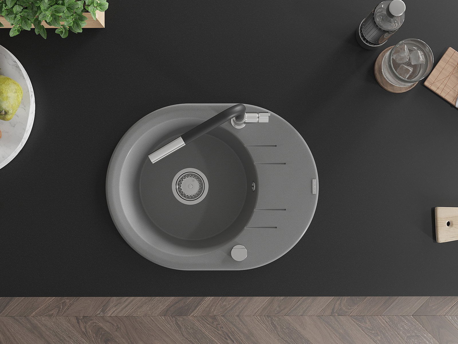 Mexen Kevin granīta izlietne ar vienu nodalījumu ar notekpaplāti un Flora virtuves jaucējkrānu, pelēka - 6517-71-670401-07