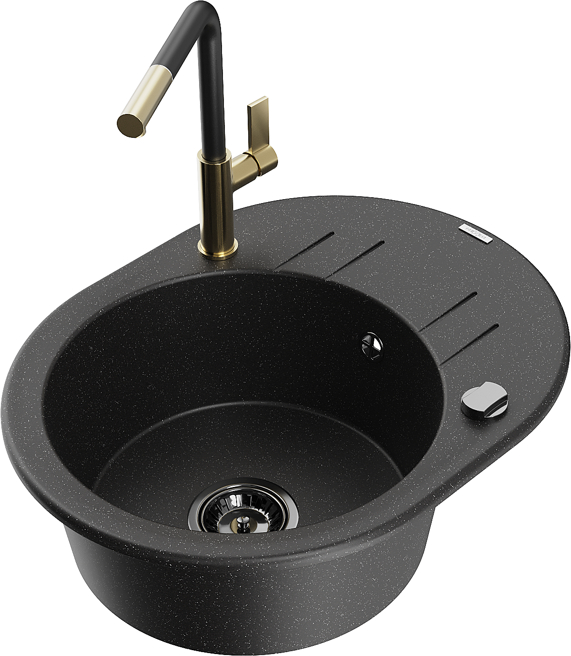 Mexen Kevin granitizlietne 1 nodalījuma ar noteces zonu un virtuves jaucējkrānu Flora, melns/sudraba metāliks