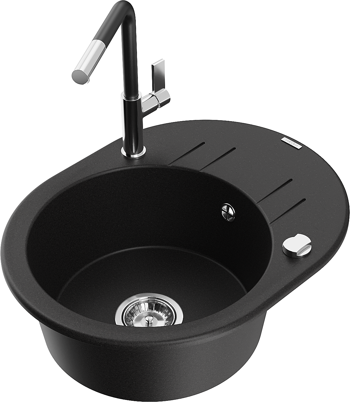 Mexen Kevin 1-kameru granīta izlietne ar noteces paneli un virtuves krānu Flora, melns - 6517-77-670401-07