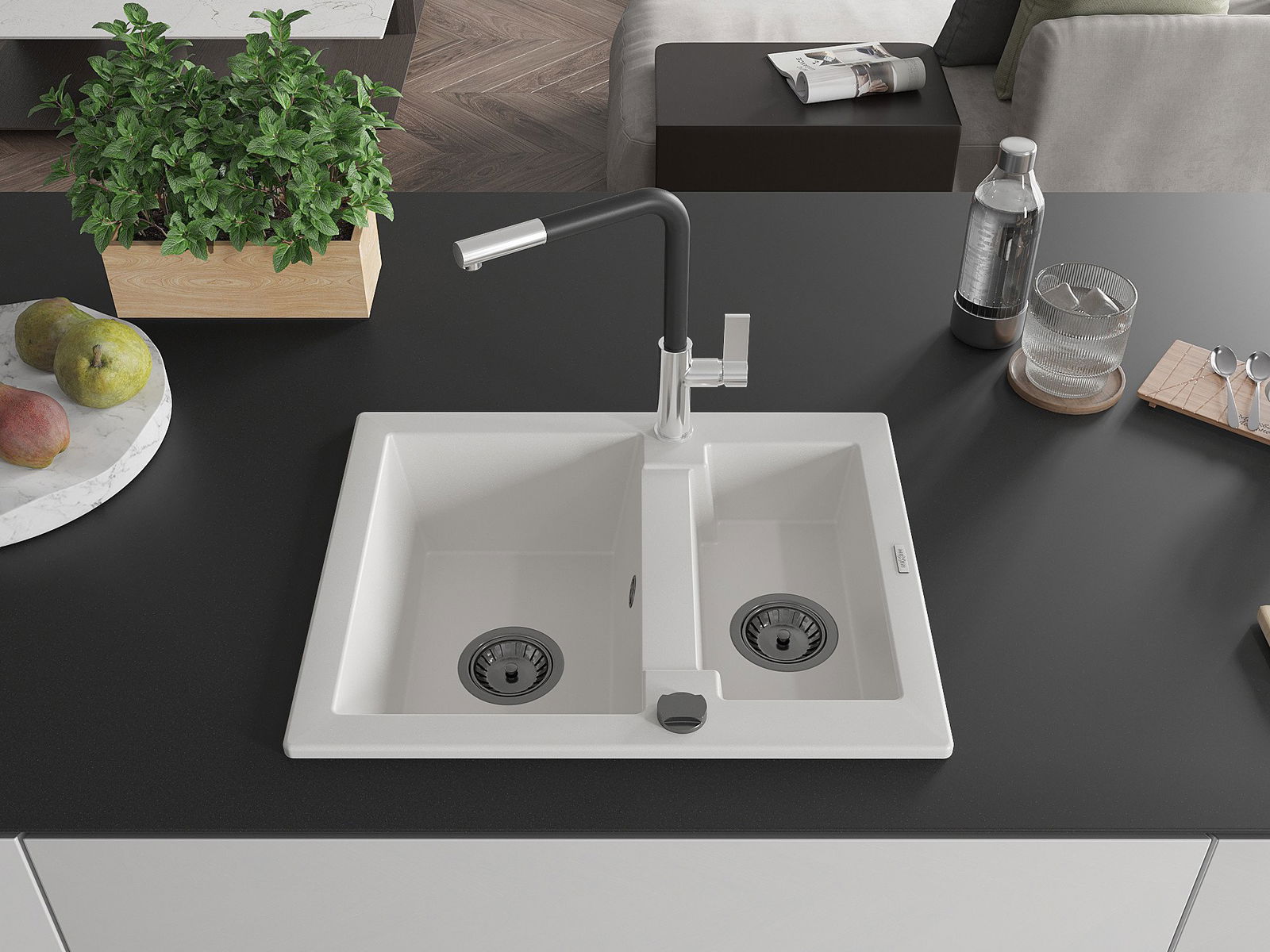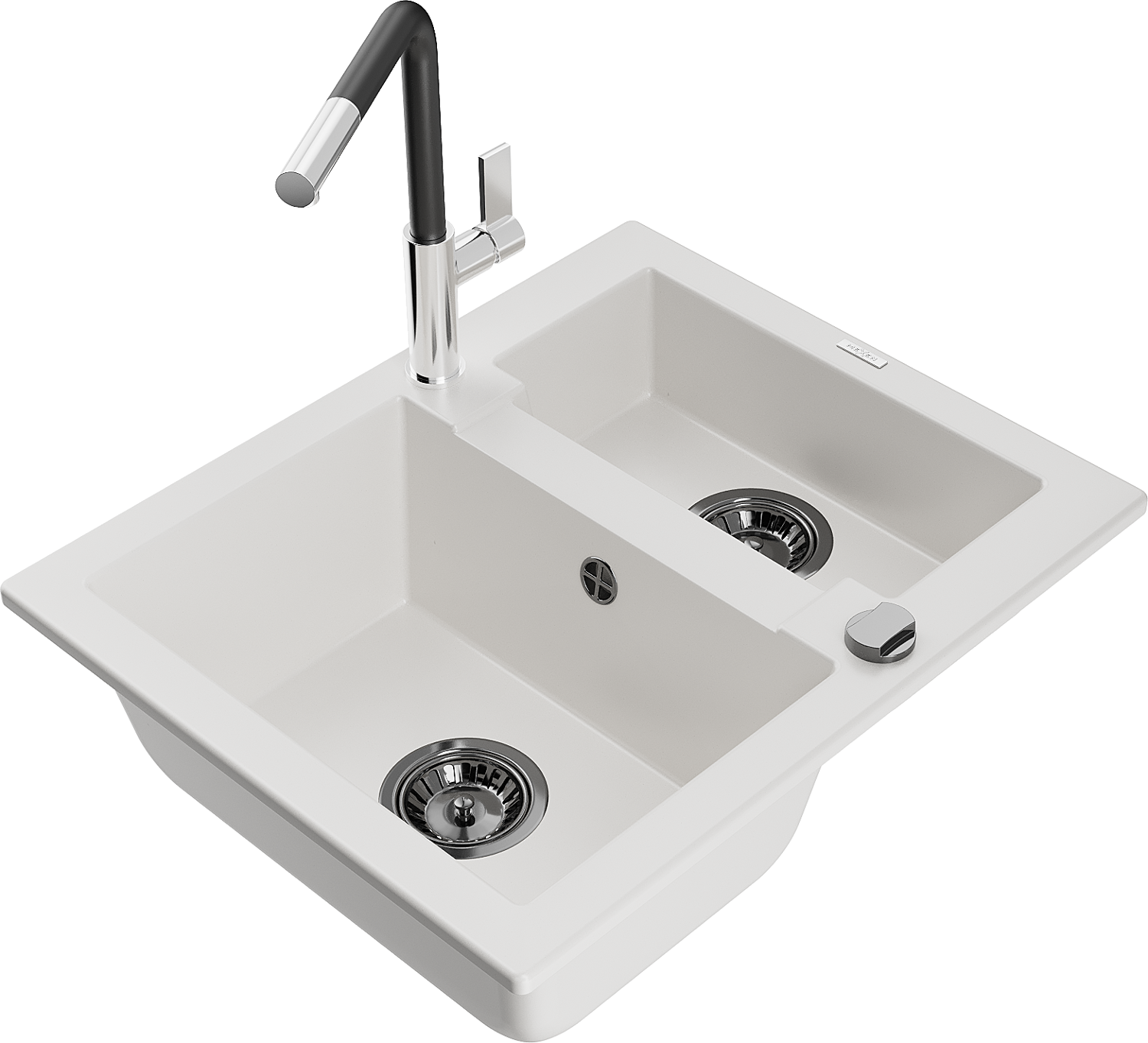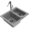 Mexen Carlos granīta izlietne ar 1,5 kamerām un virtuves jaucējkrānu Flora, balta - 6518-20-670401-07-B