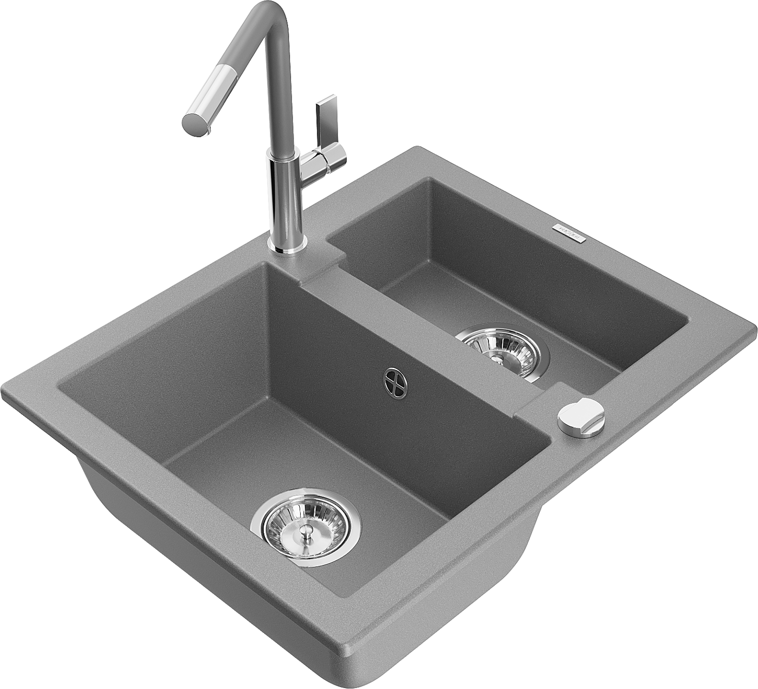 Mexen Carlos granitizlietne ar divām kamerām un virtuves jaucējkrāns Flora, pelēks - 6518-71-670401-06
