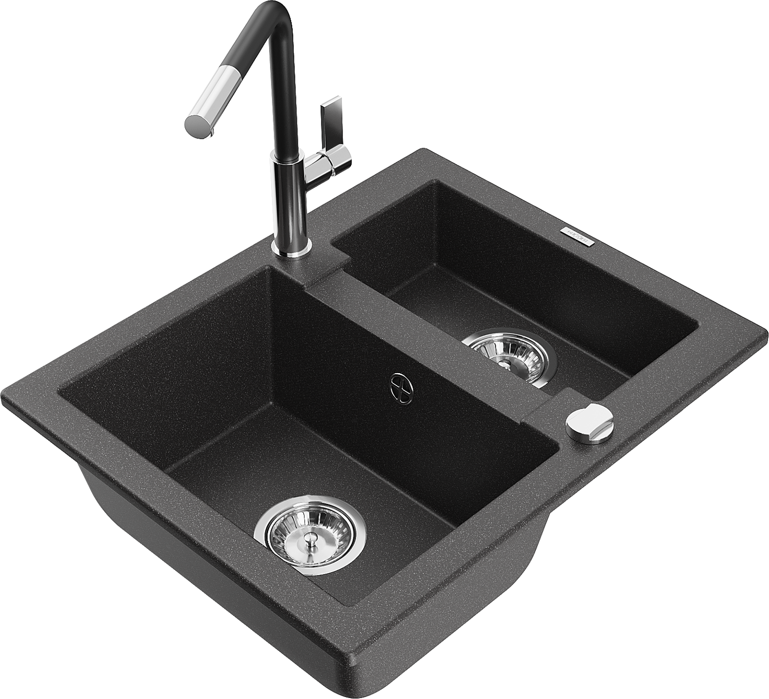 Mexen Carlos granitizlietne 1,5 nodalījumu ar virtuves jaucējkrānu Flora, melna ar plankumiem - 6518-76-670401-07