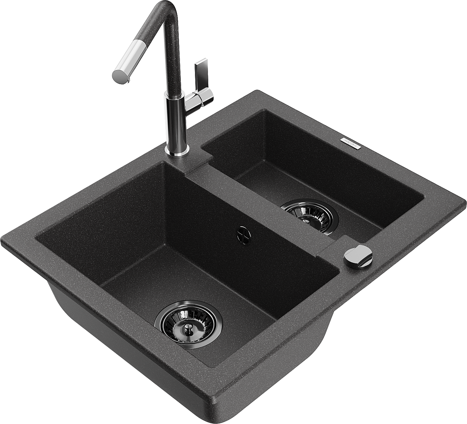 Mexen Carlos granit izlietne ar 1,5 nodalījumiem un virtuves jaucējkrānu Flora, melna ar plankumiem - 6518-76-670401-08-B