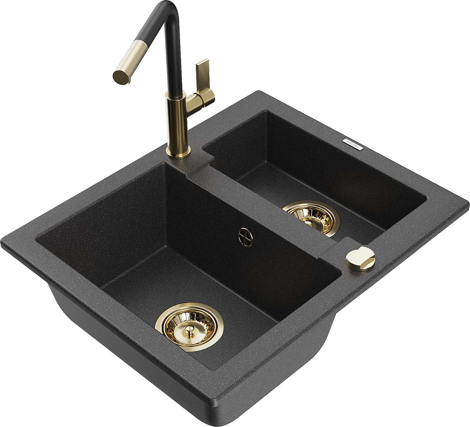Mexen Carlos 1,5 nodalījuma granīta izlietne ar virtuves jaucējkrānu Flora, melns ar plankumiem - 6518-76-670401-57-G