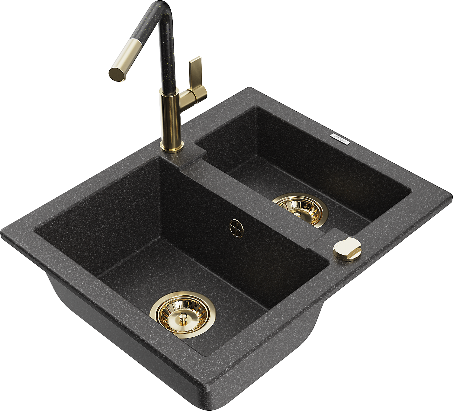 Mexen Carlos granitā izlietne ar 1,5 nodalījumu un virtuves jaucējkrānu Flora, melna ar plankumiem - 6518-76-670401-75-G